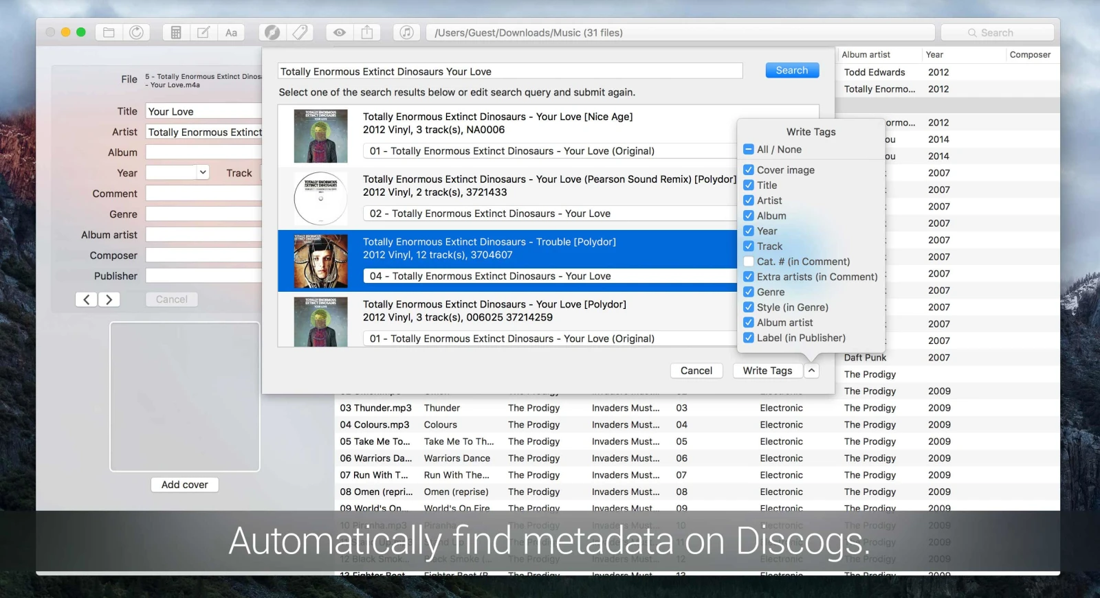 your music to iTunes with the click of a button, search and filter the open files, switch to a dark
